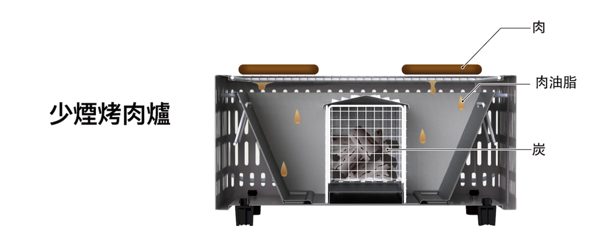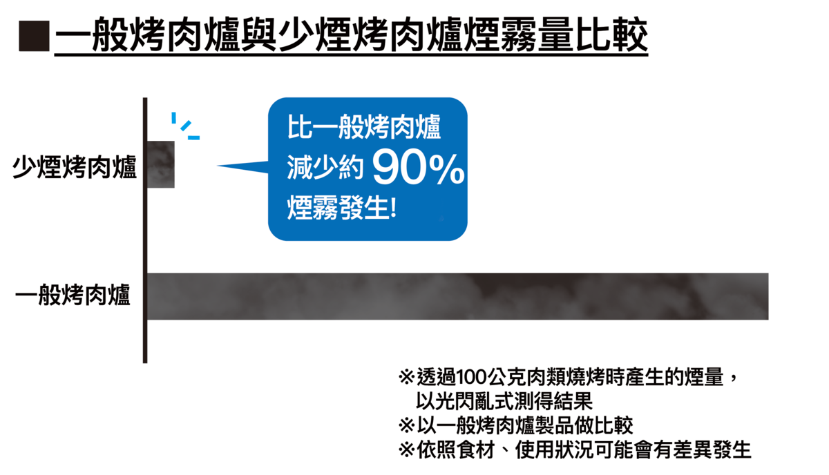 來自日本GREEN LIFE 的全新設計,相較傳統烤肉爐,可以減少約90%的煙霧產生。#